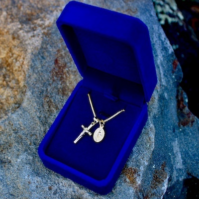 The miniature Miraculous Medal measures 1/2 inch.
