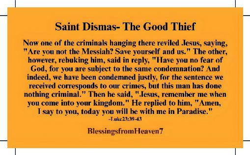 Saint Dismas, known as the Good Thief was crucified along side Jesus on Calvary HillIncludes: